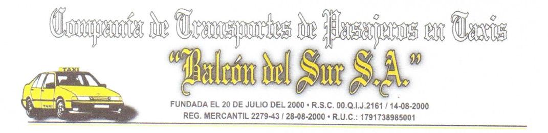 De conformidad con los Estatutos Sociales de COTABALSUR. COMPAÑÍA DE TAXIS “BALCON DEL SUR” S.A., y la Ley de Compañía en los Art. 119, 233 y 236, se CONVOCA a los Señores Accionistas a la Junta General Extraordinaria de Accionistas que se realizara el día LUNES 22 DE MAYO del 2023, a las 10H00 am., en la oficina de la Compañía ubicada en la calle García Moreno N° 494 y Eloy Alfaro en Tambillo, Cantón Mejía Provincia Pichincha, para tratar el siguiente orden del día: