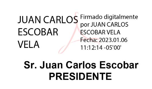 Juan Carlos Escobar Vela, en mi calidad de Presidente de la Compañía TAXI SERVICIOS TAX –SERV C.A. y de conformidad con lo dispuesto en los artículos 230-231 con sus numerales 1, 2, 3, 4, 5, así como lo que dispone en los artículos, 234236 – 237 – 238 inciso segundo y 239 de la ley de compañías y, de acuerdo a lo que dispone los Artículos 9, 10, 11, 12, 13, y 14 del Estatuto Social, convoco a Junta General Ordinaria de Accionistas de la Compañía, la misma que se llevará a cabo de manera presencial en la sede social del Conjunto Habitacional la LUZ ubicada en las calles Jijón Caamaño y Rafael Ramos, Distrito Metropolitano de Quito, Provincia de Pichincha, el día Sábado 21 de Enero del 2023, a las 09h30 horas para tratar los siguientes puntos del Orden del Día: