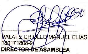 OÑA EVARISTO EDGAR KLEVER ESPINOSA LUIS ALFREDO PRESIDENTE/A SECRETARIO/A CC. 1708553936 CC. 1708218837 001-003-2399