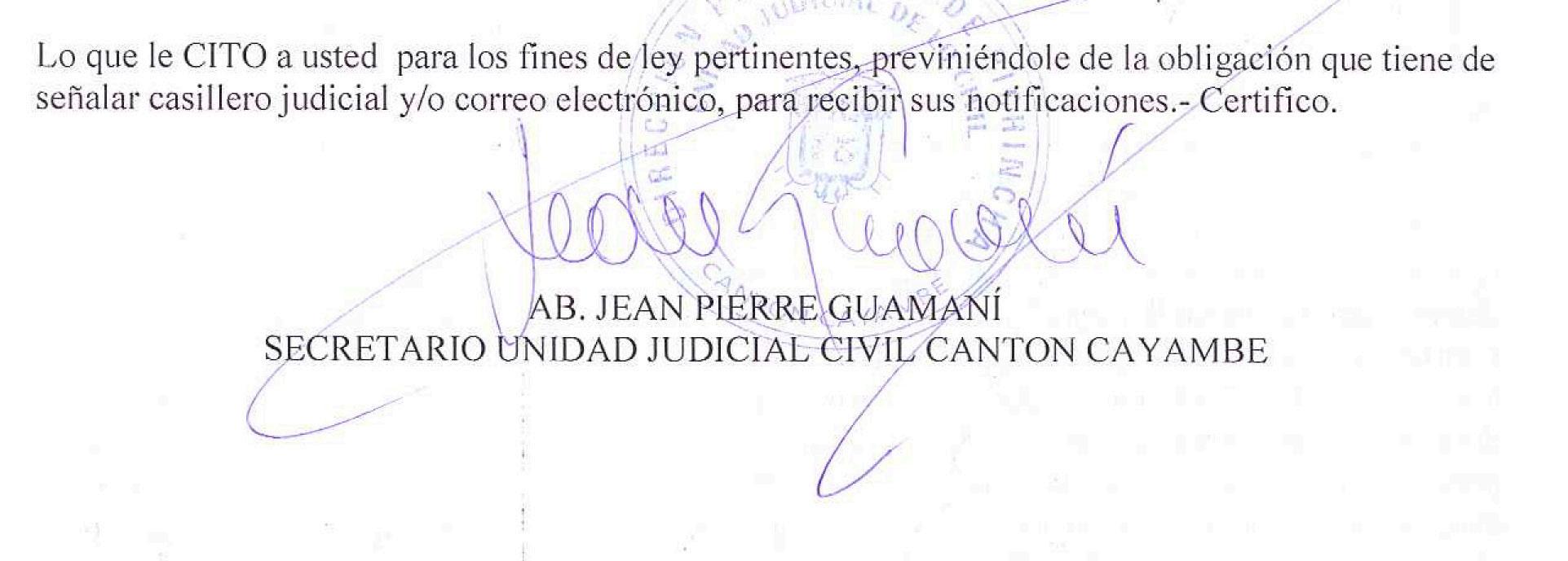 SECRETARIO: AB. JEAN PIERRE GUAMANI