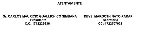 Hugo Oswaldo Bonilla Erazo Marlene Molina Muñoz PRESIDENTE SECRETARIACOMPAÑÍA DE TRANSPORTE DE CARGA PESADA YÁNEZ Y VALENCIA