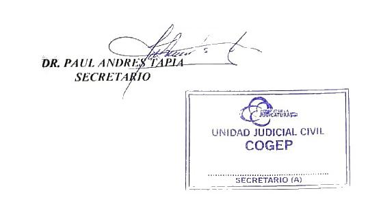 Al amparo del artículo 14 de la Ley de Comercio Electrónico, Firmas Electrónicas y Mensajes de Datos, se indica que la firma electrónica contenida en el presente auto, tiene igual validez y genera los mismos efectos jurídicos que la firma manuscrita; en consecuencia, no será necesario consignar la firma manuscrita en la presente actuación judicial. NOTIFÍQUESE.- F) AB. DIANA ALBÁN SOLANO. JUEZA