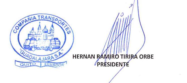 De conformidad con lo establecido en la ley de compañías y Estatutos de la compañía se convoca a los señores accionistas y de manera especial al señor VÍCTOR JAIME MORALES en su calidad de comisario principal, a la Junta General Ordinaria de Accionistas de la compañía de TRANSPORTES GUADALAJARA S.A, que se realizará el día jueves 30 de marzo del 2023 a las 10:00 en la calle 28 de junio Oe11-206 y 25 de noviembre, El Carmen – Llano Grande.