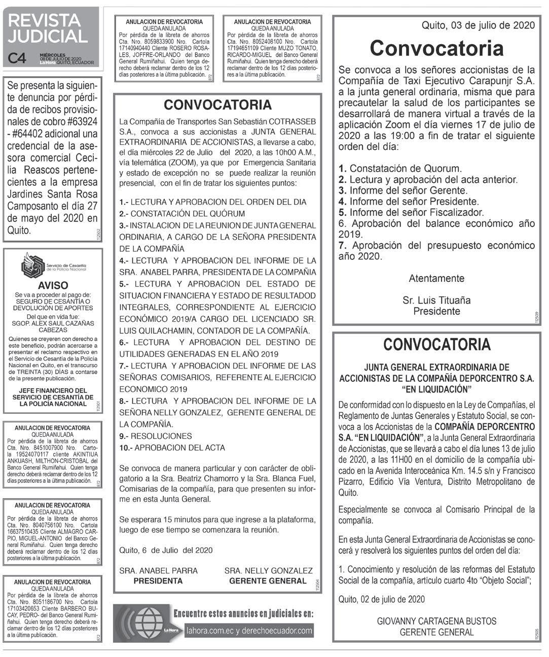 UNIDAD JUDICIAL CIVIL CON SEDE EN LA PARROQUIA IÑAQUITO DEL DISTRITO METROPOLITANO DE QUITO, PROVINCIA DE PICHINCHA DE PICHINCHA. Quito, miércoles 15 de julio del 2020, a las 12h30.
