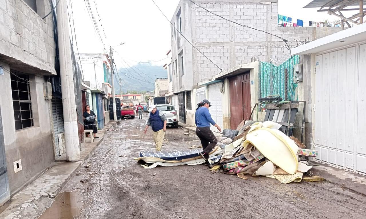 Entre los daños constan 2.100 metros lineales de la red vial urbana, 45 viviendas con ingreso de lodo, así como 5 bienes privados, como talleres mecánicos y locales de accesorios de vehículos.