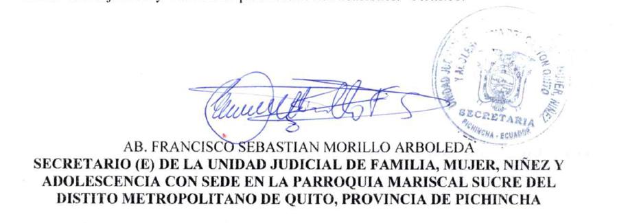 UNIDAD JUDICIAL ESPECIALIZADA DE FAMILIA, MUJER, NIÑEZ Y ADOLESCENCIA CON SEDE EN LA PARROQUIA MARISCAL SUCRE DEL DISTITO METROPOLITANO DE QUITO, PROVINCIA DE PICHINCHA