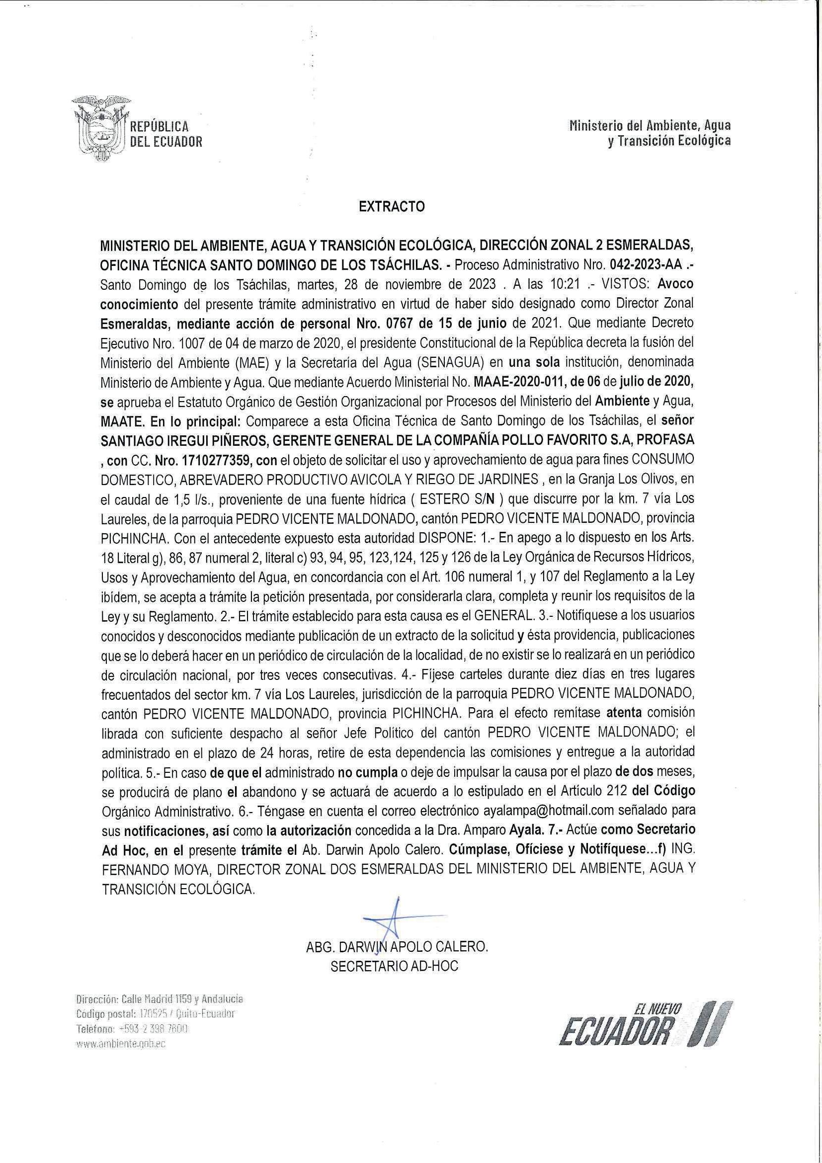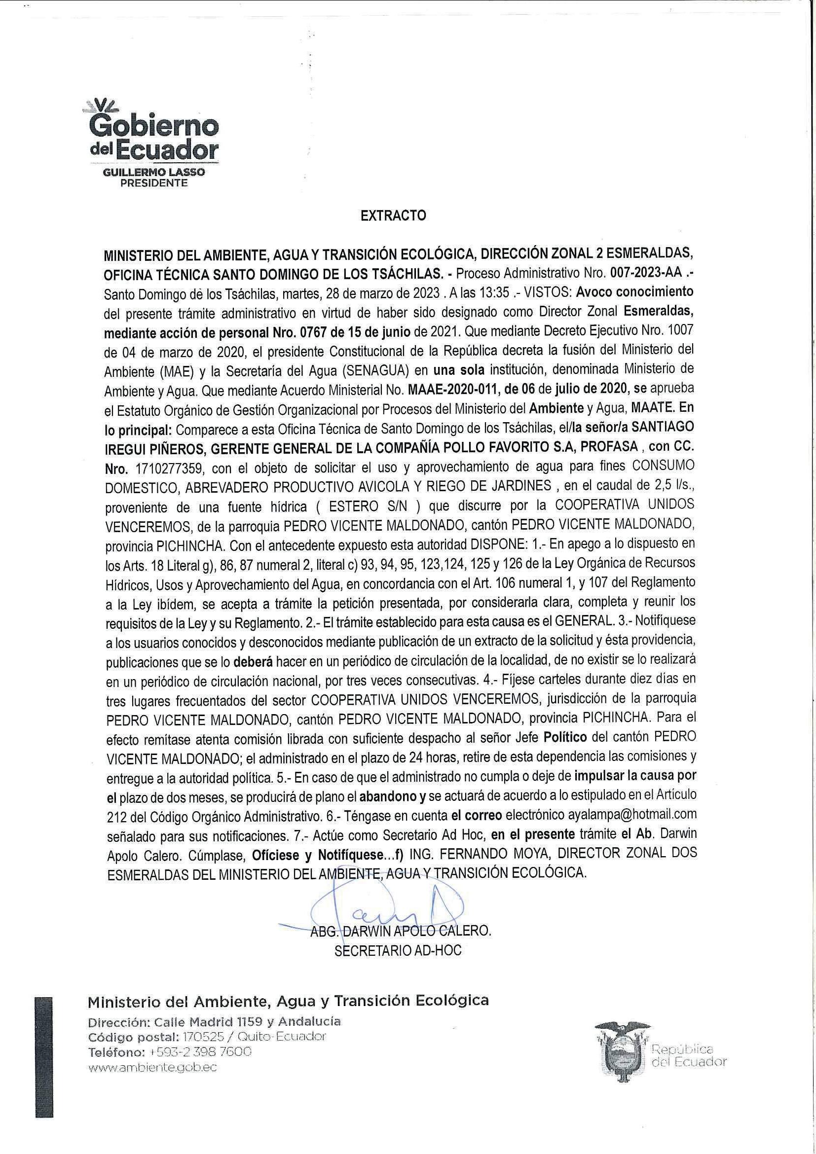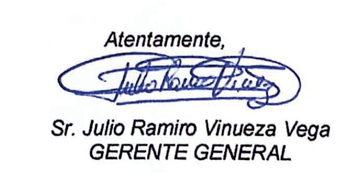 Se convoca de manera especial e individual al Señor Nelson Tapia; domiciliado en la parroquia de Yaruqui calle Luis Pallares y Pasaje Carrera, Comisario de la Compañía., Se reitera que considerando el Artículo 292 de la Ley de Compañías que los balances, estados financieros, informes de comisario y de gerente general del año 2023, se encuentran a disposición de los señores accionistas para su revisión en la oficina de la compañía. Se deja constancia que los documentos señalados, se exhiben con quince (15) días de anticipación a la celebración de la junta general convocada. La Junta General Extraordinaria se celebrará aplicando las normativas vigentes que se establecen en los Artículos 233, 235 y 292 de la Ley de Compañías y según los Artículos 2,