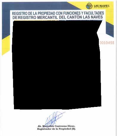 De conformidad con los Artículos 4 y 5 de la Resolución N°. - 003-NG- DINARDAP-2012, se va a proceder a REPONER la inscripción de escritura pública; DE COMPRAVENTA DE DOS LOTES DE TERRENO ASIGNADO CON LOS NUMEROS DOS Y CUATROS; OTORGADO POR HUGO JAVIER BORJA BORJA Y ROSA AURORA ALARCON ARTEAGAS, A FAVOR DE; CURIMINING S.A Legalmente Representado por el Licenciado Edwin Ramiro Salazar, celebrado de fecha veintitrés de noviembre del 2021, otorgada ante el Doctor. Wilson Ernesto Toscano Tasigchana, Notario Primero del Cantón las Naves; los lote de terrero asignado con el número dos de una extensión de SIETE MIL SETENTA Y SEIS HECTAREAS (7.76m2); que equivale a 11 cuadras Y Lote de terreno signado con el NUMERO CUATRO, una extensión de SIETE MIL CINCUENTA Y SEIS METROS CUADRADOS (7.056m2); que equivale a UNA CUADRA ubicado en el Cantón las Naves, provincia de Bolívar; cuyos linderos generales y específicos son los siguientes: POR EL NORTE; Carretero la Esperanza en 244 metros; POR EL SUR, Terrenos del sr. Salomón Borja Lara en 228 metros; POR EL ESTE, Herederos de Vicente Aguilar con 330 metros y; POR EL OESTE, Freddy Lara en 100 metros y Bolívar Guzmán con 230 metros; la misma que constaba inscrita con fecha 06 de diciembre del año 2021 bajo los números 464 del Reportorio y 253 del Registro de la Propiedad. Los que pudieran tener interés, pueden oponerse en el término de 15 días a partir de la presente publicación. Las Naves 14 de marzo del 2024.