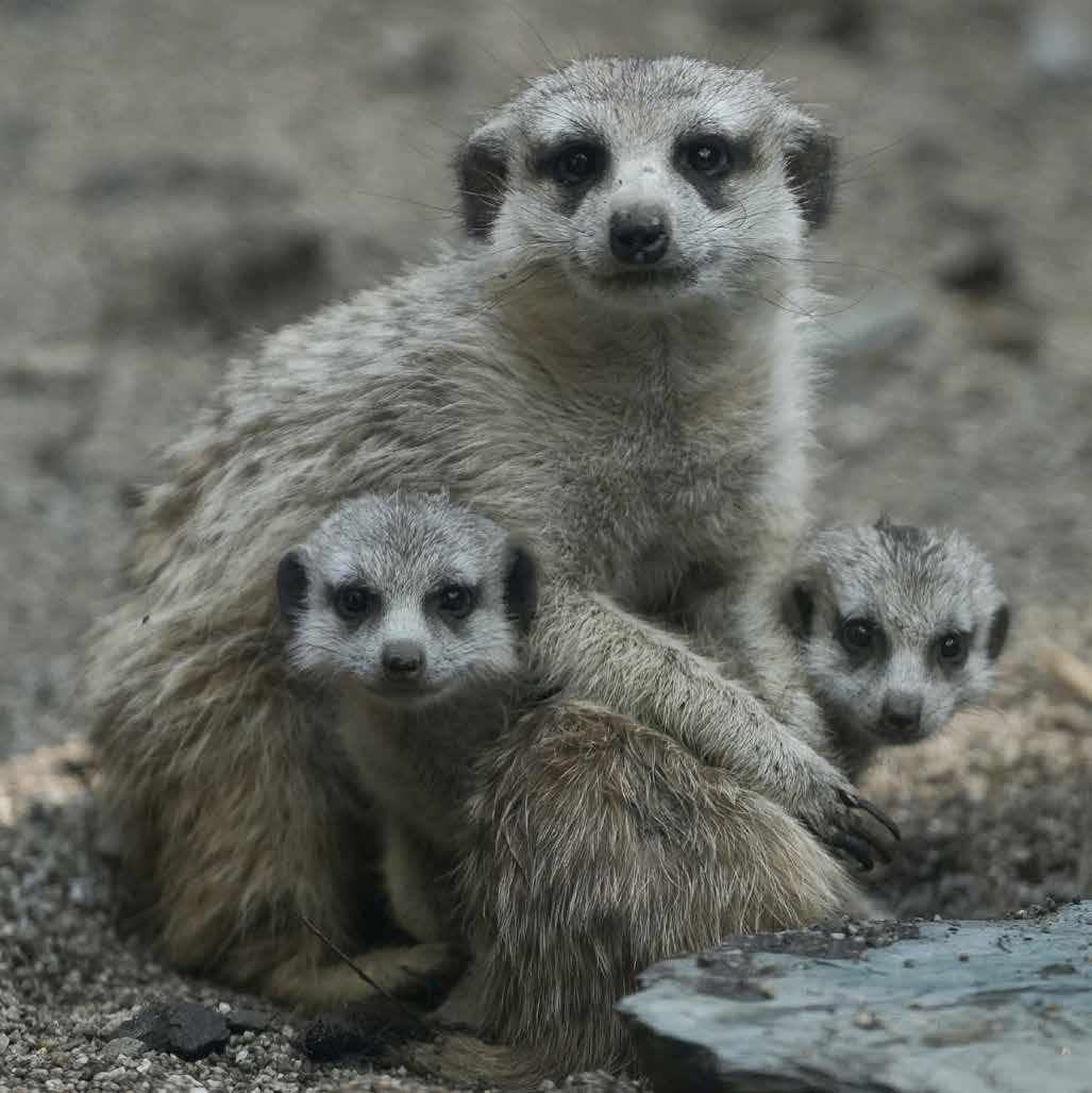 Fotografía de una suricata (Suricata suricatta) con una de sus crías nacidas en el zoológico de Cali (Colombia) tras un periodo de gestación de 60 días. El 15 de agosto de 2024 cumplieron un mes de nacidas. EFE