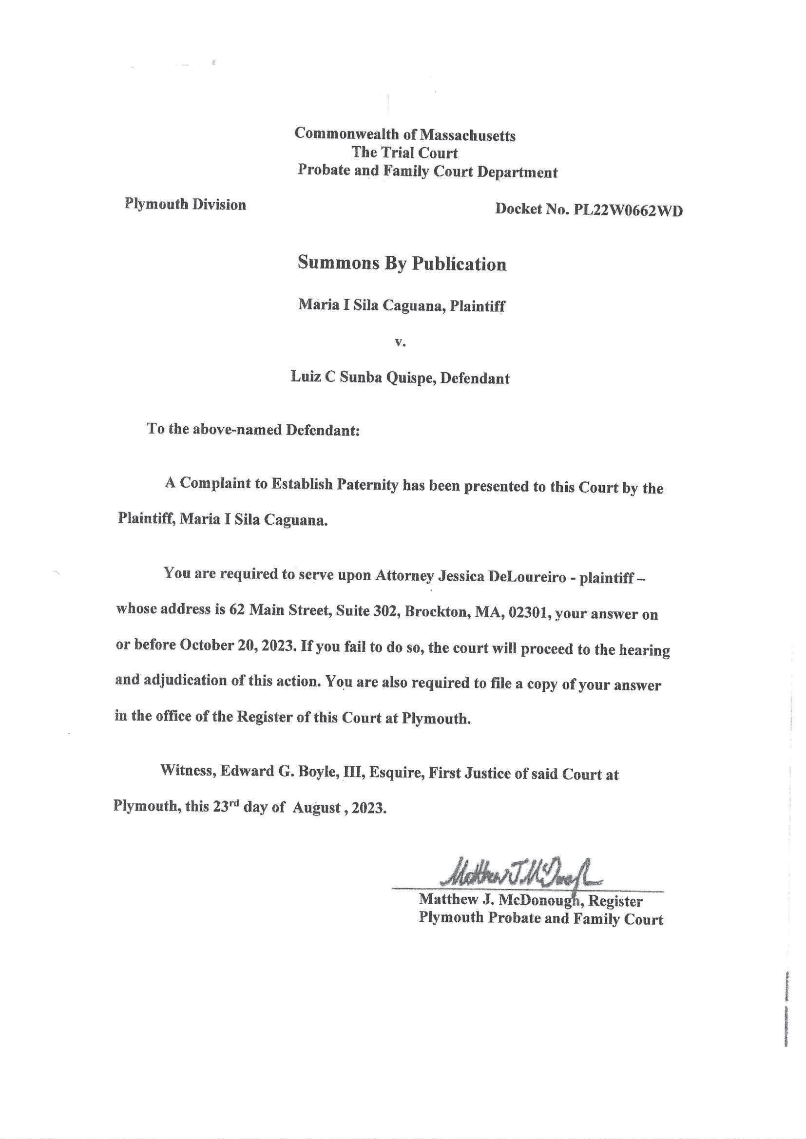 UNIDAD JUDICIAL MULTICOMPETENTE CIVIL CON SEDE EN EL CANTÓN MEJÍA, PROVINCIA DE PICHINCHA. Mejia, jueves 6 de abril del 2023, a las 14h31. VISTOS: Cumplida que ha sido la diligencia dispuesta por esta AUTORIDAD en auto inmediato anterior se considera: PRIMERO.- CALIFICACIÓN Y ADMISIÓN A TRÁMITE: En atención a lo consagrado en el artículo 169 de la Constitución, se la CALIFICA de completa, clara y cumple los requisitos legales generales contemplados en los artículos 142 y 143 del COGEP, situación por la cual se la ADMITE A TRÁMITE DE PROCEDIMIENTO ORDINARIO, establecido en el Libro IV, Título I, Capítulo I del Código citado, y en virtud de lo prescrito en el artículo 289 ibídem. SEGUNDO.- INSCRIPCIÓN.- Conforme a lo determinado en el inciso séptimo del Art. 146 del Código Orgánico General de Procesos (2019), inscríbase la demanda en el Registro de la Propiedad de este cantón, para lo cual confiérase el oficio respectivo dirigido al señor Registrador de la Propiedad del Cantón Mejía, a fin de que cumpla con lo dispuesto. TERCERO.- CITACIÓN: 3.1.- Al haber comparecido la accionante señora CUEVA CISNEROS MARIA INES, (fs. 45) ante esta JUZGADORA y al declarar bajo juramento lo siguiente: “…que les es imposible determinar la individualidad, el domicilio o residencia de los herederos desconocidos que tengan intereses en los bienes del señor MOISES JACINTO LEMA SANCHEZ, que ha efectuado todas las diligencias necesarias y ha acudido a los registros públicos de acceso, para tratar de ubicarlos…”; se dispone: De conformidad a los Art. 56 (2019); y, Art. 58 (2019) del Código Orgánico General de Procesos, CÍTESE a los herederos desconocidos de la causante señora MARIA LUISA MANCHENO MUÑOZ, por la prensa en uno de los diarios de mayor circulación que se edita en el Distrito Metropolitano de Quito, mediante tres publicaciones que se las realizara en fechas distintas. La parte accionante se acercarán a la Secretaría de esta Judicatura a retirar la documentación necesaria. 3.2.- CÍTESE con el contenido de la demanda y el presente auto al AB. ROBERTO CARLOS HIDALGO PINTO, en su calidad de ALCALDE DEL GAD MEJÍA y al DR. ADOLFO RAMIRO MAYORGA CÁRDENAS, en su calidad de PROCURADOR SÍNDICO DEL GAD MEJÍA, en el lugar señalado en la demanda, para lo cual remítase el suficiente despacho al señor Coordinador de la Oficina de Citaciones de esta Unidad Judicial. Al momento de citarse a la parte demandada se les prevendrá de su deber procesal de comparecer en esta causa, designar abogado patrocinador y señalar casilla judicial electrónica en este Distrito Judicial del cantón Mejía, para sus respectivas notificaciones. 3.3.- De conformidad a los Arts. 2, 3, 5 y 6 de la Ley Orgánica de la Procuraduría General del Estado, NOTIFÍQUESE al señor PROCURADOR GENERAL DEL ESTADO, para lo cual remítase ATENTO DEPRECATORIO VIRTUAL, a través del sistema implementado a uno de los señores Jueces de la UNIDAD JUDICIAL CIVIL CON SEDE EN LA PARROQUIA IÑAQUITO DEL DISTRITO METROPOLITANO DE QUITO, PROVINCIA DE PICHINCHA, ofreciéndole reciprocidad en casos análogos, para lo cual envíese el suficiente despacho. CUARTO: CONTESTACIÓN: Conforme lo establecido en el segundo inciso del 200313947-DFE artículo 291 del COGEP se concede a los demandados, el término de 30 días una vez citados, a fin de que contesten su demanda en la forma determinada en los artículos 151 del Código Orgánico General de Procesos (2019) y siguientes del COGEP, salvo aplicación de la disposición contemplada en el artículo 157 (2019) ibídem, de ser el caso. QUINTO.- ANUNCIO DE PRUEBA: Considérese el anuncio de prueba señalados en el libelo de demanda, en la parte pertinente a su anuncio de prueba; circunstancia que se estará a lo previsto en los artículos 160 (2019), 161, 294.7 literal d), del COGEP, sobre la admisibilidad y practica de prueba en la respectiva Audiencia Preliminar. Al tenor de lo dispuesto en el artículo 169 tercer inciso (2019) Ibídem, se ordena a las partes que pongan a disposición de la respectiva contraparte las pruebas que estén o deban estar en su poder. SEXTO.- NOTIFICACIONES Y AUTORIZACIÓN: Téngase en cuenta el casillero judicial electrónico señalado por la parte accionante para posteriores notificaciones; así como la autorización conferida a su defensa técnica. Agréguese al expediente la documentación adjunta por la parte actora. Actúe la Dra. Bélgica Guerra Guerra, en calidad de Secretaria Titular de esta Unidad Judicial Multicompetente Civil. NOTIFÍQUESE.- F). DRA.WILMA GUAIPATIN GARZON – JUEZA. UNIDAD JUDICIAL MULTICOMPETENTE CIVIL CON SEDE EN EL CANTÓN MEJÍA, PROVINCIA DE PICHINCHA. Mejia, martes 20 de junio del 2023, a las 16h05. VISTOS: Agréguense al proceso los escritos presentados por la señora MARIA INES CUEVA CISNERROS-. En lo principal se dispone: A fin de evitar nulidades procesales, cumplir con el debido proceso y el derecho a la defensa, con fundamento en lo que dispone el Art. 169 de la Constitución y Art. 130 numeral 8 del Código Orgánico de la Función Judicial, se convalida el auto de fecha 6 de abril del 2023, a las 14h31, ya que por un lapsus calami erróneamente se en la parte pertinente se ha hecho constar lo siguiente; “…que les es imposible determinar la individualidad, el domicilio o residencia de los herederos desconocidos que tengan intereses en los bienes del señor MOISES JACINTO LEMA SANCHEZ, que ha efectuado todas las diligencias necesarias y ha acudido a los registros públicos de acceso, para tratar de ubicarlos…”; siendo lo correcto: ““…que les es imposible determinar la individualidad, el domicilio o residencia de los herederos desconocidos que tengan intereses en los bienes del señor MARIA LUISA MANCHENO MUÑOZ, que ha efectuado todas las diligencias necesarias y ha acudido a los registros públicos de acceso, para tratar de ubicarlos…”; por lo que se rectifica en este sentido par