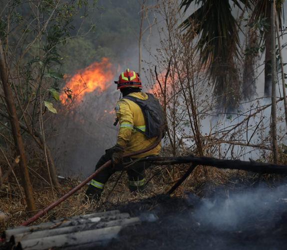Bomberos luchan contra un infierno en el cañón del Chiche