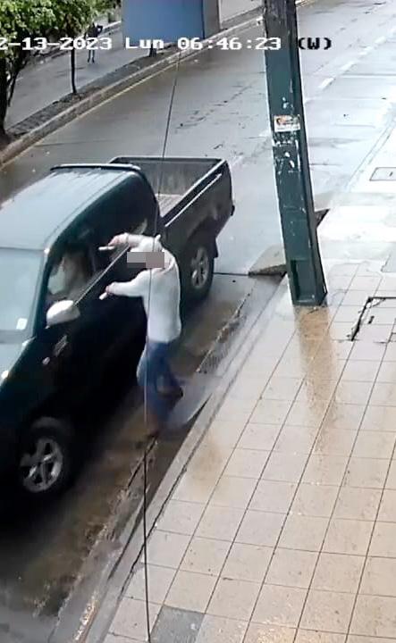La mañana de este lunes 13 de febrero de 2023, en las cámaras de video vigilancia de una casa, en la calle 12 de Octubre, a unos cuantos metros de la UPC, quedó registrado el intento de robo a un vehículo.