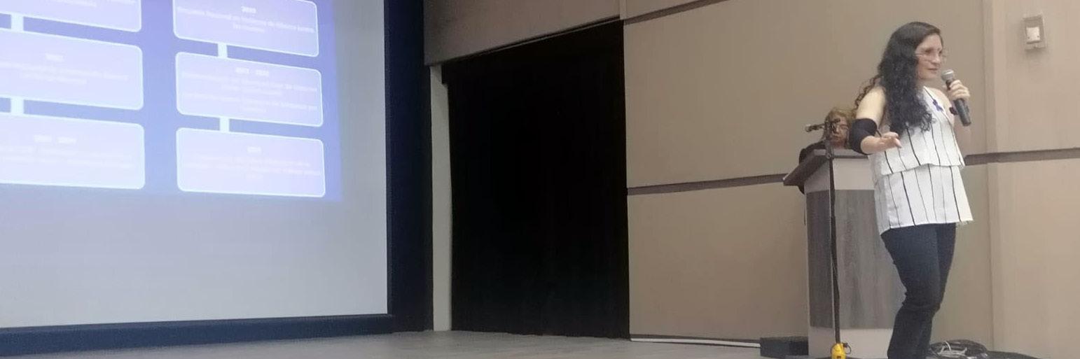 Luisa Miranda, miembro de la plataforma Nacional de Mujeres Caminando ha cia la Igualdad, habló sobre la importancia del enfoque de la interseccionalidad en la política pública, para pre venir y erradicar la violen cia contra las mujeres. Ella dio una breve reseña his tórica de los hitos legales que se han generado, tanto en lo nacional, como en lo internacional.