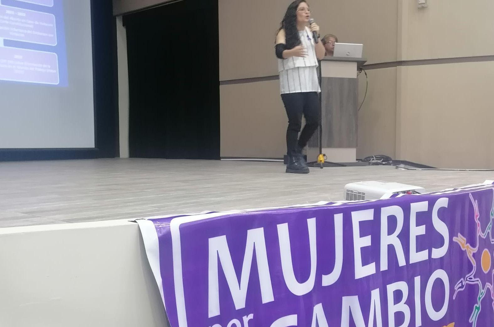 EXPOSITORA. Luisa Miranda, miembro de la plataforma Nacional de Mujeres Caminando hacia la Igual dad, dio una breve reseña histórica de los avances de esta lucha.