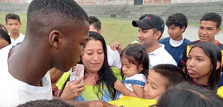 Con entusiasmo y euforia los estudiantes de las escuelas de fútbol municipales de Santo Domingo recibieron al seleccionado ecuatoriano Moisés Caicedo, luego de su participación en el Mun dial Catar 2022 , donde anotó el gol del empate ante Senegal.