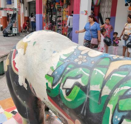 Poco a poco las estatuas con figuras de animales que se colocaron a lo largo de la avenida 7 de Octubre empiezan a presentar daños, así se lo evidenció en un recorrido que hizo Diario La Hora por el centro de la ciudad.