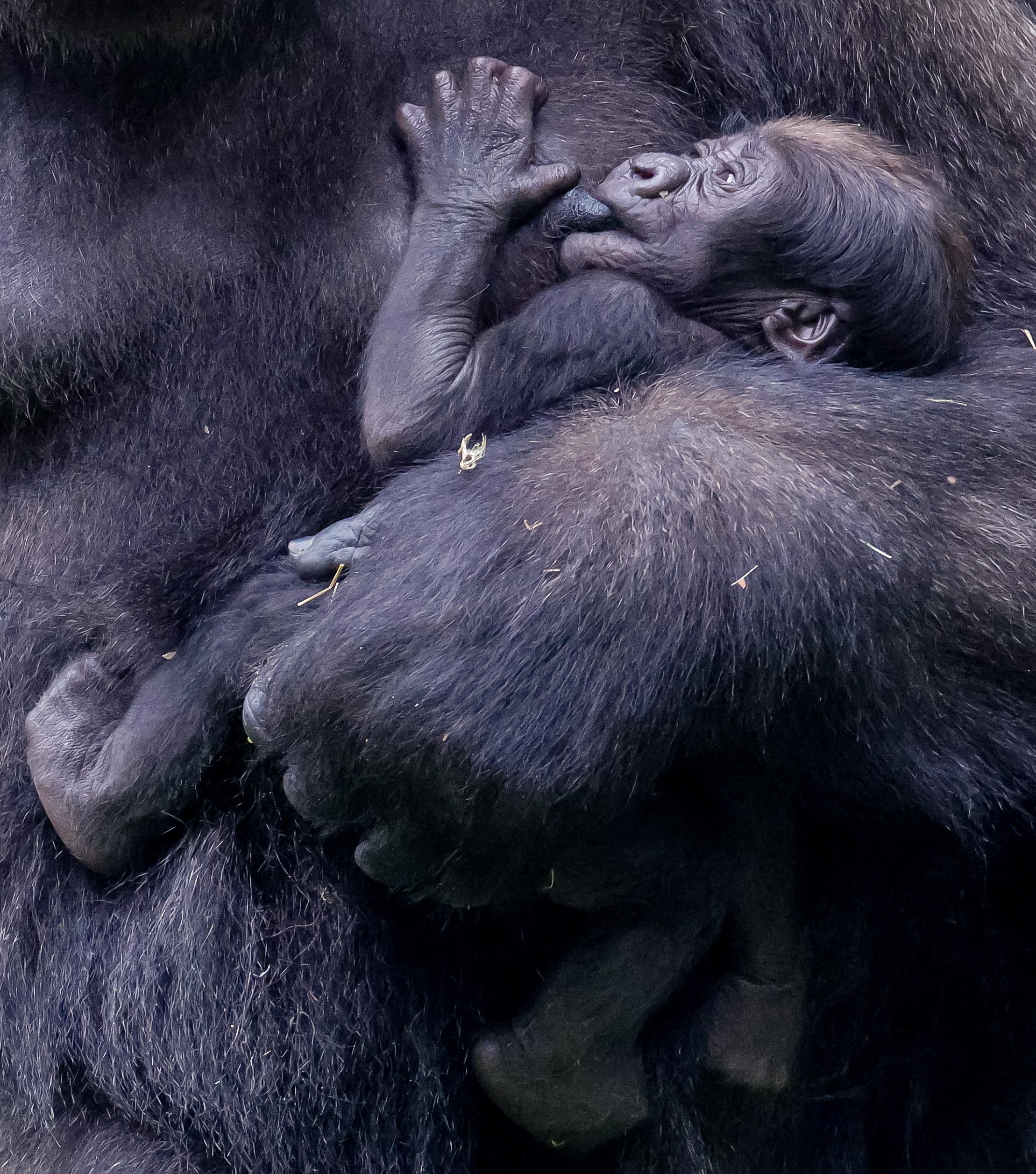 ‘Shalia’, sostiene a su bebé de dos semanas, ‘Willie B. III’, dentro de su recinto en el hábitat del zoológico de Atlanta en Georgia (EE.UU). El bebé gorila, nacido el 24 de abril de 2023, es el primer descendiente de ‘Willie B Jr’ y nieto del legendario ‘Willie B’ espalda plateada. EFE