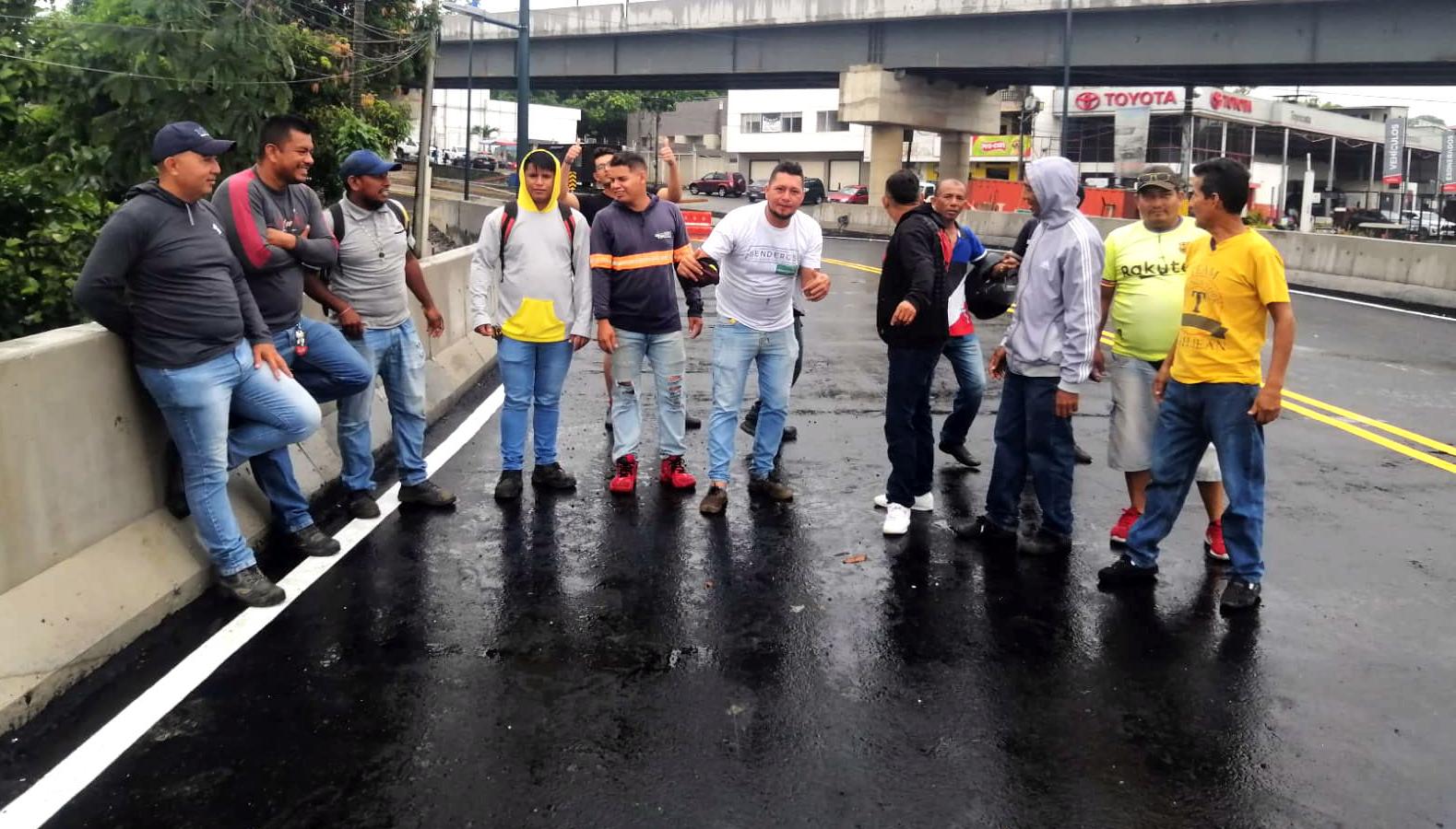 Pendientes y a la espera de la inauguración del puente a desnivel sobre la vía Walter Andrade permanecieron alrededor de 50 obreros para levantar sus voces de protesta.