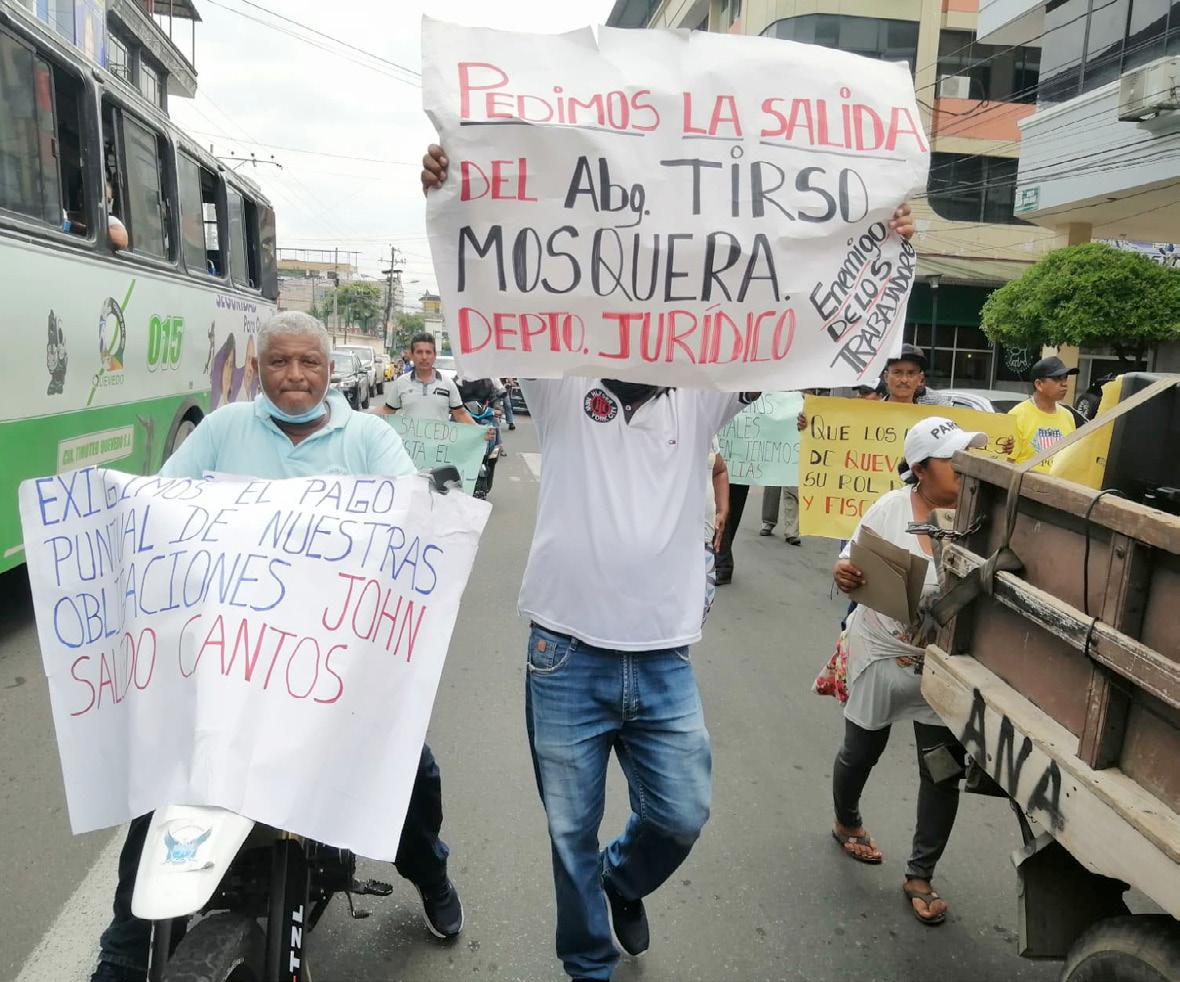 Teodoro Benavides es uno de los obreros del Municipio de Quevedo que salió con una pancarta, por las principales calles de la ciudad para exigir que le paguen su sueldo.