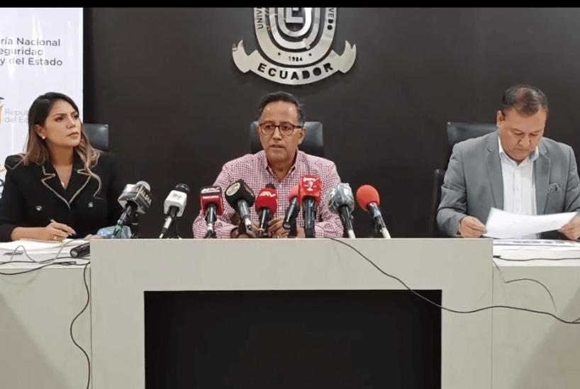 Detalles Después del Gabinete Sectorial de Seguridad, a puerta cerrada, entre el ministro del Interior, Juan Zapata, EL Secretario Nacional de Seguridad Pública, Diego Ordóñez, la gobernadora de Los Ríos, Connie Jiménez, entre otras autoridades locales, en la Universidad Técnica Estatal de Quevedo (UTEQ), se realizó