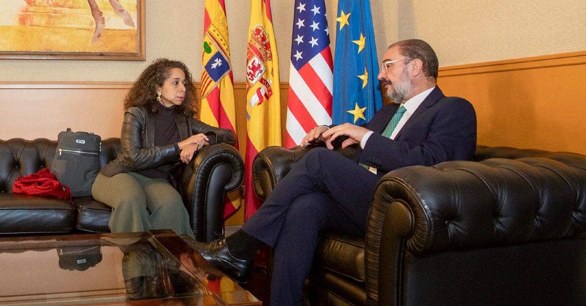 REUNIÓN. El presidente de Aragón, Javier Lambán, y la embajadora de EE.UU en España, Julissa Reynoso.Autoridades provinciales consideran que el estado de excepción ha sido exitoso.