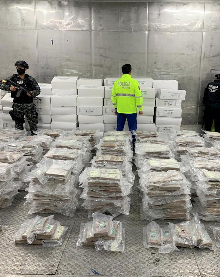 El peso de la droga, según Narváez, es de dos toneladas 641 kilos, del cual serían retirados del consumo interno 26 millones 410 mil dosis. “Se afecta a las finanzas de estas organizaciones del crimen organizado, con 5 millones 514 mil dólares que sería el valor de estas sustancias en suelo ecuatoriano”, explicó.