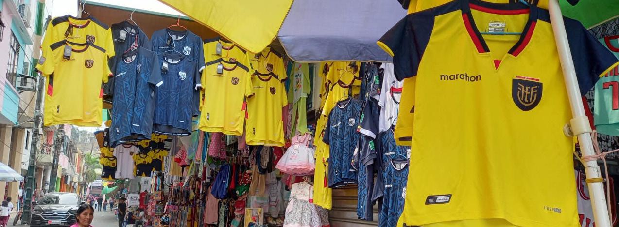 cales comerciales y puestos informales de ropa ya tienen flameando la camiseta de la selección, en los co lores de preferencia y gus to del cliente. L os precios son de acuerdo a la calidad de la tela, desde los 5 dóla res en adelante puede us