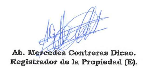 De conformidad con los Artículos 4 y 5 de la Resolución N°. - 003-NG-DINARDAP-2012, se va a proceder a REPONER la inscripción de escritura pública; COMPRAVENTA DE UN LOTE DE TERRENO; QUE OTORGA; SALOMON FILIBERTO BORJA