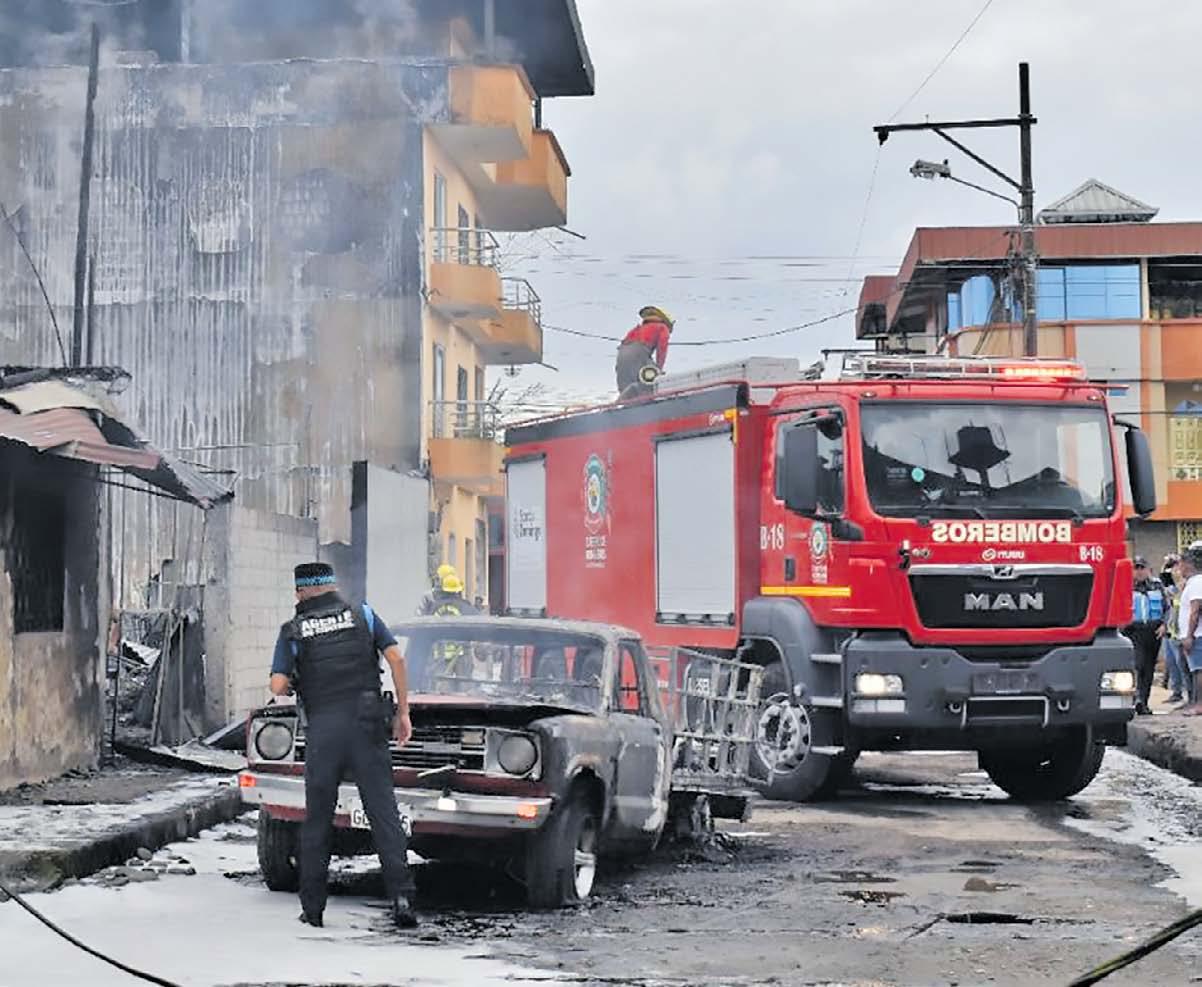 El personal del taller mecánico de la Prefectura de Esmeraldas, ubicado en San Mateo, se llevó un gran susto este 30 de agosto de 2023 al ver que los vehículos que estaban en el garaje estaban incinerados.