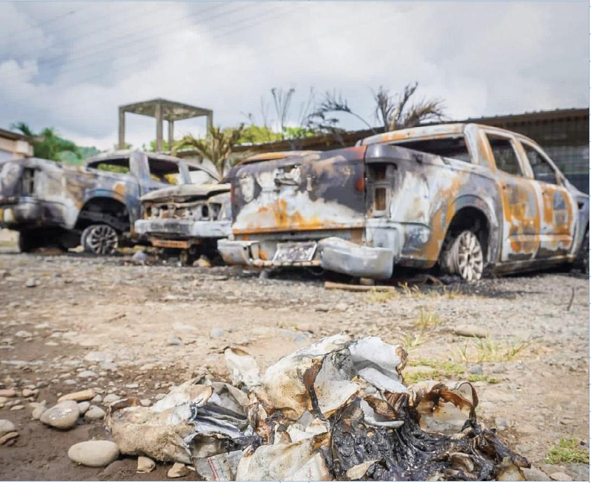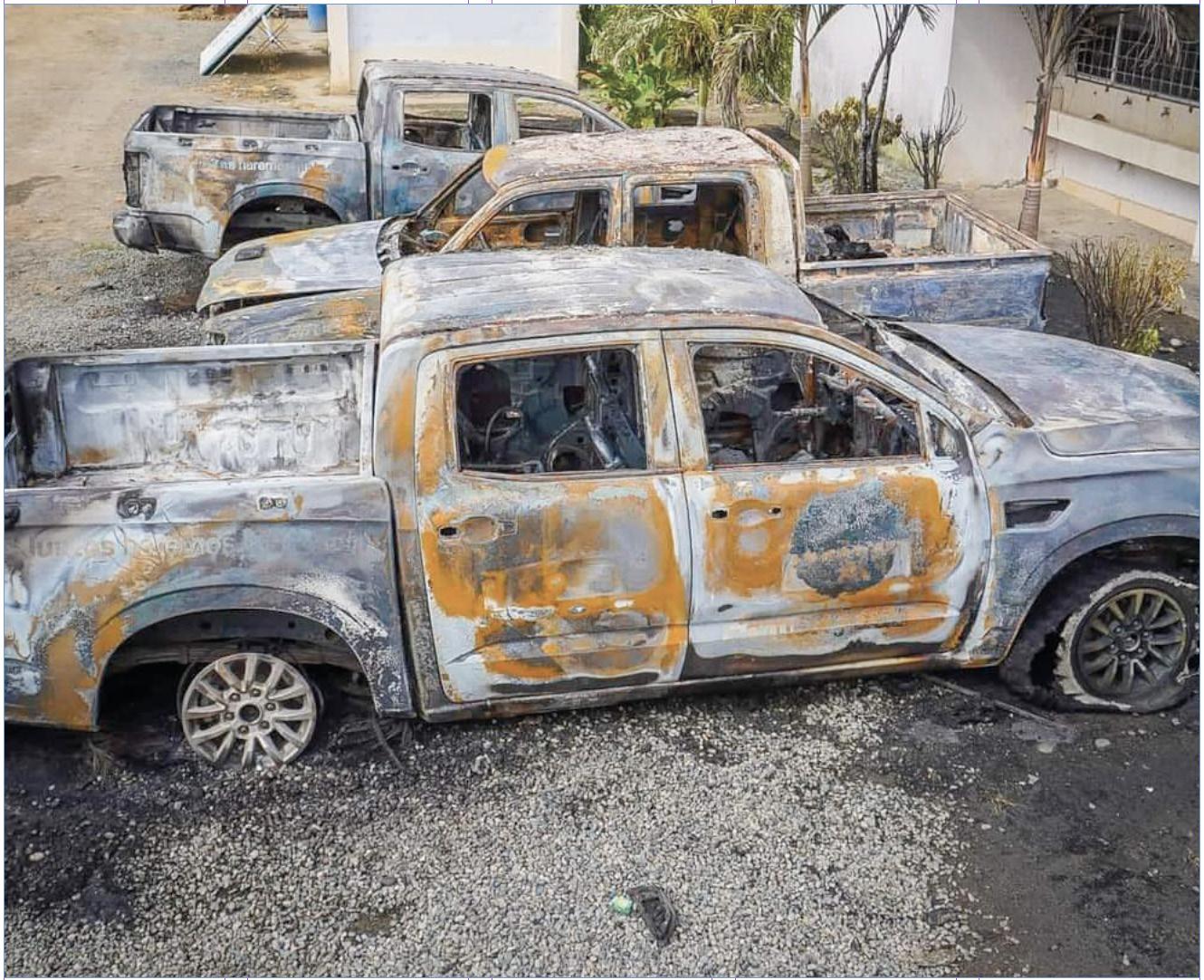 El 30 de agosto de 2023 por la madrugada, varios vehículos fueron incinerados dentro del taller mecánico de la Prefectura. La Policía Nacional localicó un artefacto explosivo.
