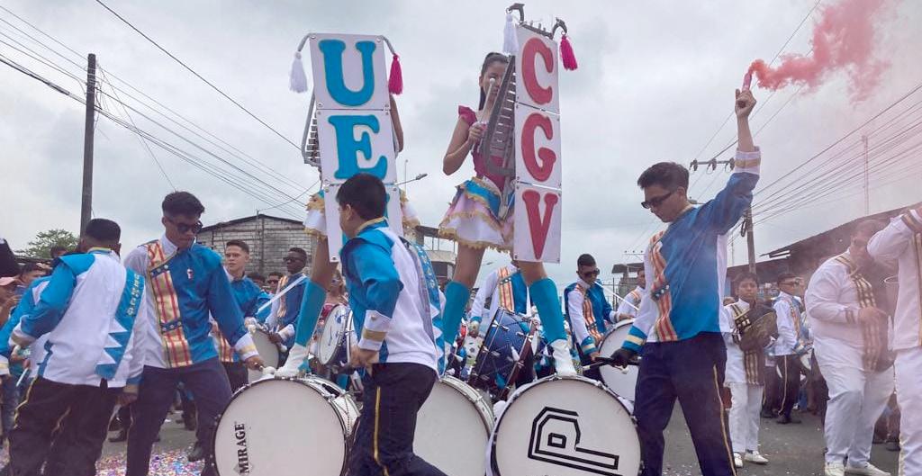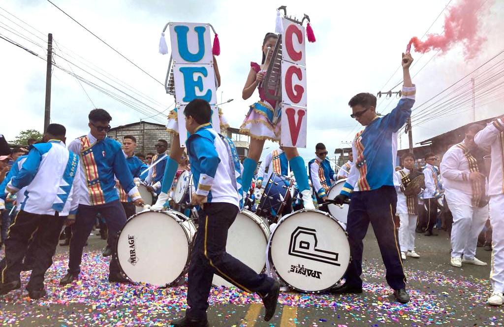 Decenas de niños y jóvenes participaron en el Desfile Cívico Estudiantil con el cual culminó la celebración por los 41 años de parroquialización de San Carlos, Quevedo, este domingo 2 de julio de 2023.(JO)