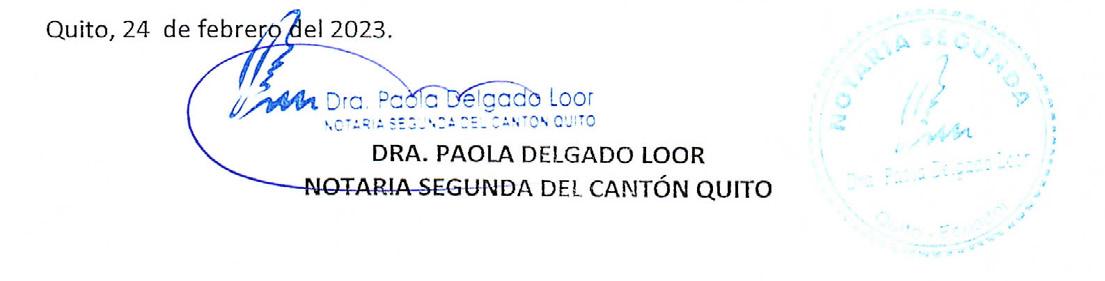 Pongo en conocimiento del público que mediante escritura pública otorgada ante mí Doctor ROMULO JOSELITO PALLO QUISILEMA, NOTARIO CUARTO DEL CANTON QUITO, los señores PACO RICARDO SOSA HARO, y NANCY PATRICIA SOCASI TAYUPANTA, contrajeron matrimonio civil el QUINCE de OCTUBRE de MIL NOVECIENTOS NOVENTA Y DOS, conforme consta de la copia certificada del Acta de Inscripción de Matrimonio que se adjunta; y disolvieron de mutuo acuerdo la Sociedad Conyugal mediante escritura pública de fecha OCHO de SEPTIEMBRE del DOS MIL CUATRO, otorgada ante el JUEZ DÉCIMO PRIMERO DE LO CIVIL DE PICHINCHA del Cantón Quito, debidamente marginada en la Dirección General del Registro Civil, Identificación y Cedulación el Acta de Disolución de Matrimonio, conforme se desprende de la referida Acta de Inscripción de Matrimonio antes referida. Las adjudicaciones del patrimonio se encuentran detalladas en el texto de la referida escritura pública de liquidación de sociedad conyugal, celebrada ante mí Doctor ROMULO JOSELITO PALLO QUISILEMA, NOTARIO CUARTO DEL CANTON QUITO, dos de febrero del año dos mil veintitrés, por lo que en aplicación a lo dispuesto en el Artículo Sexto de la Ley Reformatoria a la Ley Notarial, publicada en el Registro Oficial número Cuatrocientos seis de fecha veinte y ocho de Noviembre del dos mil seis, que faculta a los Notarios disponer la inscripción en los Registros de la Propiedad y Mercantiles, correspondientes la escritura de la liquidación de la Sociedad Conyugal, previo el trámite previsto en dicha norma legal. Mediante una sola publicación, en uno de los periódicos de circulación Nacional, el extracto de la liquidación del patrimonio de la sociedad conyugal correspondiente a los señores PACO RICARDO SOSA HARO, y NANCY PATRICIA SOCASI TAYUPANTA, otorgada mediante escritura pública antes indicada, por el término de veinte (20) días, a fin de que las personas que eventualmente tuvieren interés en esta liquidación puedan presentar su oposición fundamentada, dentro del referido término. Particular que pongo en conocimiento para los fines legales correspondientes. Quito, a tres de febrero del año dos mil veintitrés.