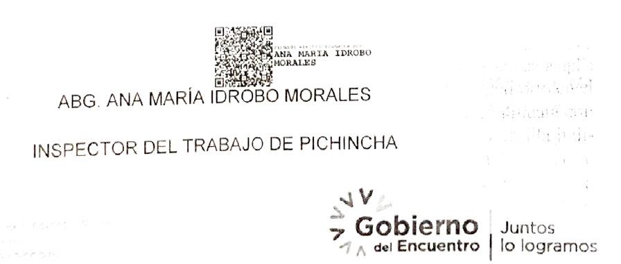 INSPECCION DEL TRABAJO DE PICHINCHA.- Quito, 27 de febrero del 2023, a las 08H00. Dentro del trámite de Visto Bueno N° 314859-2023-AMIM, que sigue el señor (a) MOSQUERA LEMA FANNY YOLANDA en calidad de empleador en contra del señor (a) LUZON CASTILLO ANGELA ELIZABETH en calidad de trabajador. En lo principal se dispone: 1) Agréguese a los autos el memorial presentado por la parte accionante.- 2) De conformidad con lo establecido en el inciso 3 del Art. 9 del Acuerdo Ministerial No. MDT-2021-219 y considerando que la parte actora ha manifestado bajo juramento, desconocer el lugar de domicilio actual de la parte accionada, con la copia del extracto de esta providencia, notifíquese al trabajador mediante 1 (una) publicación a realizase, en periódico de amplia circulación de esta ciudad, previniéndole al accionado que de no dar contestación al petitorio en el término de 22 (veinte y dos) días, a contarse a partir de la última publicación, se continuará con el trámite en su rebeldía.- 3).- Se advierte al accionado de su obligación de señalar casilla judicial, para futuras notificaciones.- 4).- Las publicaciones por la prensa deberán remitirse a este inspector en el término de 10 días contados a partir de notificación con la presente providencia, bajo prevención de ordenar el archivo del expediente en caso de no dar cumplimiento- NOTIFÍQUESE. f) AB. ANA MARÍA IDROBO M.