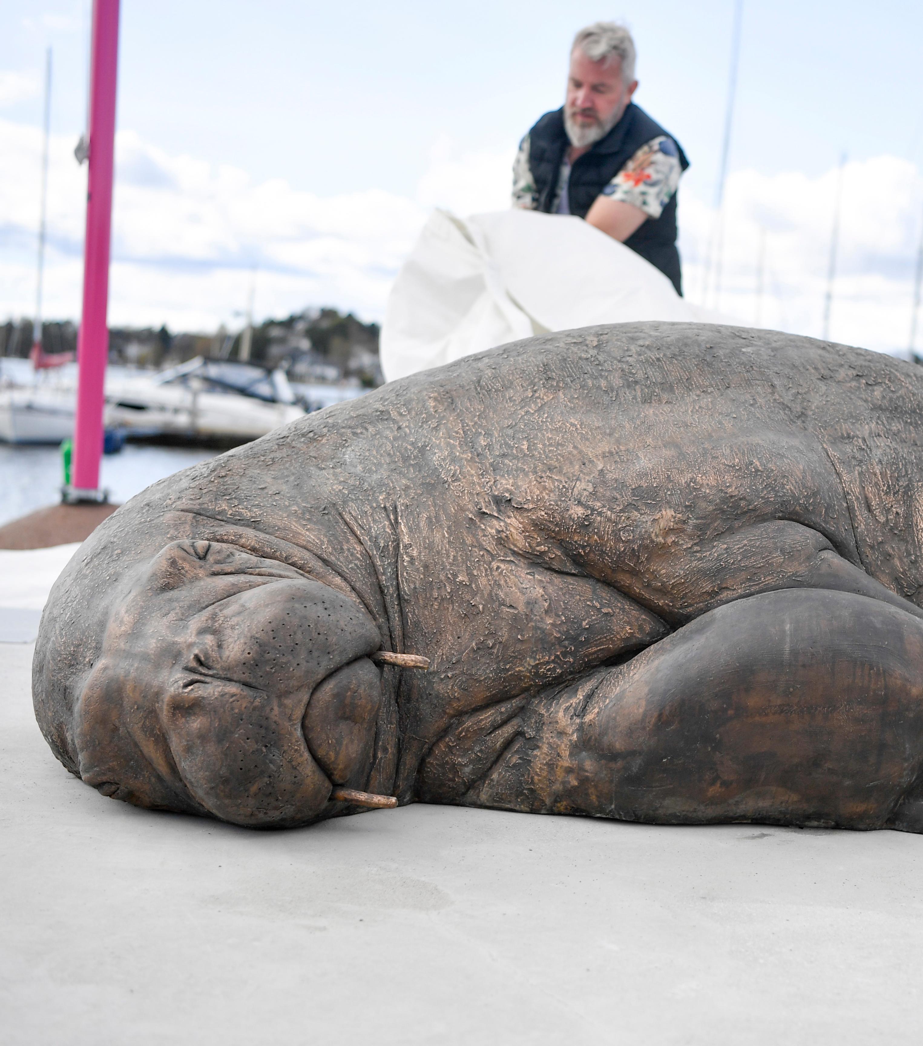 Escultura recuerda a la morsa Freya en Oslo