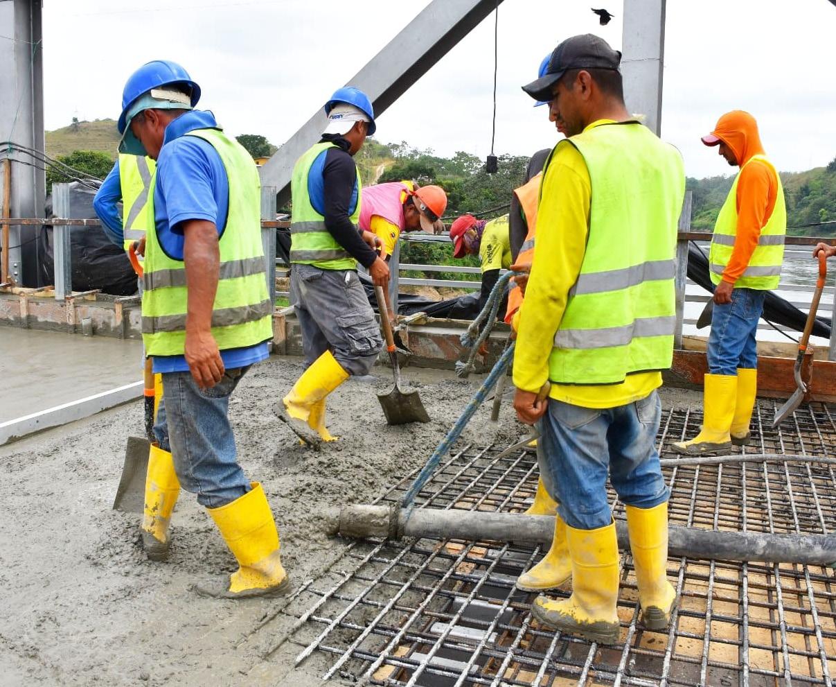 Así lo hizo conocer Leodan Intriago, alcalde de Pichincha, quien agregó que los trabajos avanzan a buen ritmo y por ende se funden con concreto 92.40 metros en la capa de rodadura, de los 164 que mide el viaducto de largo.