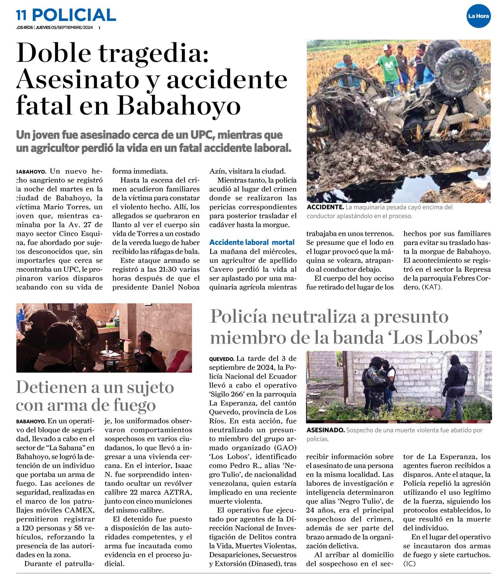 Mario Torres, un joven que, mientras caminaba por la Av. 27 de mayo sector Cinco Esquina, fue abordado por sujetos desconocidos que le propinaron varios disparos acabando con su vida de forma inmediata. 11