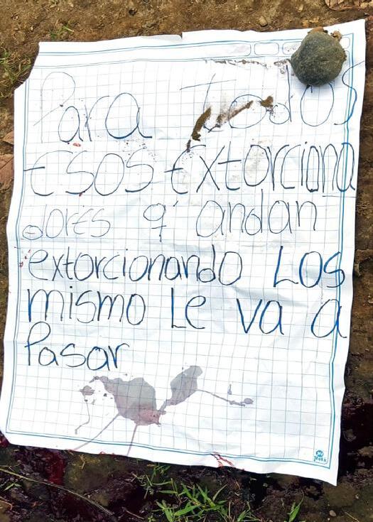 Alvarado. Junto a su cuerpo se encontró un papel donde se da a conocer que lo mismo le ocurriría a otras personas. El hecho se dio en El Empalme. 22