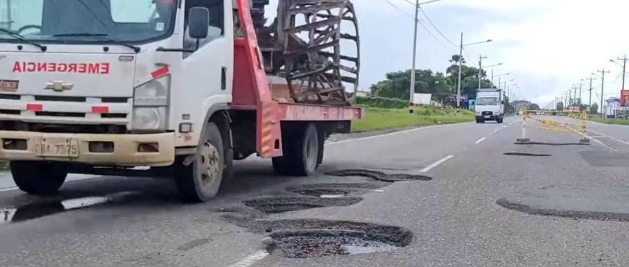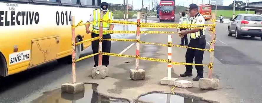 Grandes huecos hay en el tramo Babahoyo – Jujan. Señales preventivas se han colocado para evitar accidentes, esta arteria estuvo anegada por las lluvias e inundaciones.