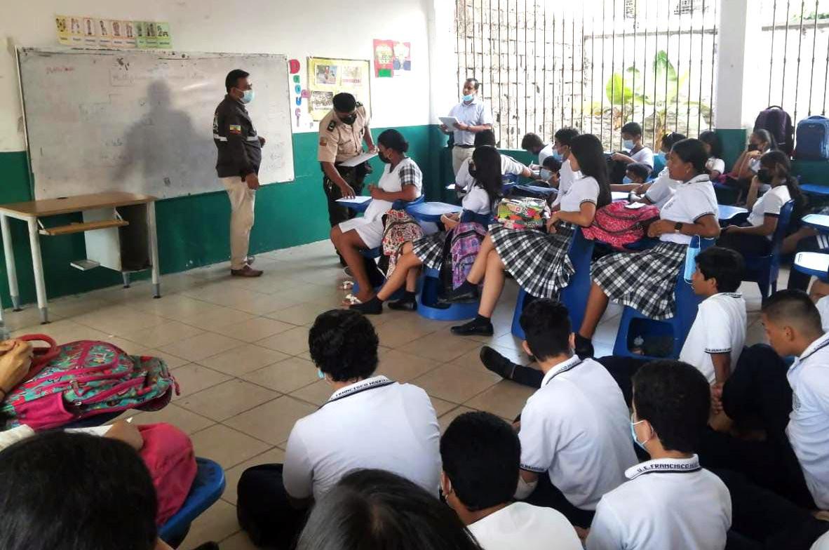 Para concienciar acerca del cometimiento de delitos, personal de la Policía Nacional de Babahoyo visita los sectores populares, sobre todo los considerados vulnerables para el consumo de sustancias ilícitas y sujetas a fiscalización.