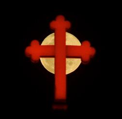 la luna Rosa de abril se eleva detrás de una cruz en la cúpula del santuario Annai Velankanni en Chennai, India, el 6 de abril de 2023.la primera luna llena de primavera, que sale en abril, se conoce como la luna Rosa. eFe