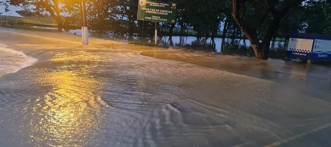 También debido al desbordamientos de ríos y esteros, cuatro tramos de la vía Babahoyo – Montalvo continúan inundados.