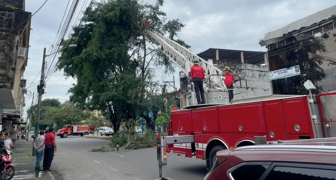 En la parroquia San Camilo, Quevedo, varias ramas cayeron debido a los fuertes vientos, lo que obstaculizó el tránsito vehicular por unos minutos.