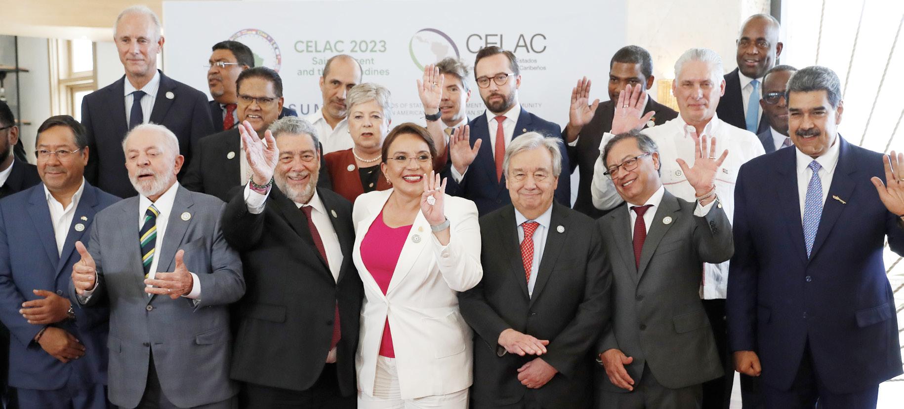 tARIOS Desde la izquierda en la primera fila: Los presidentes de Bolivia, Luis Arce; de Brasil, Luiz Inácio Lula da Silva; de Honduras, Xiomara Castro; el secretario general de las Naciones Unidas (ONU), Antonio Guterres; los mandatarios de Colombia, Gustavo Petro; de Cuba, Miguel Díaz-Canel, y de Venezuela, Nicolás Maduro. EFE/Archivo