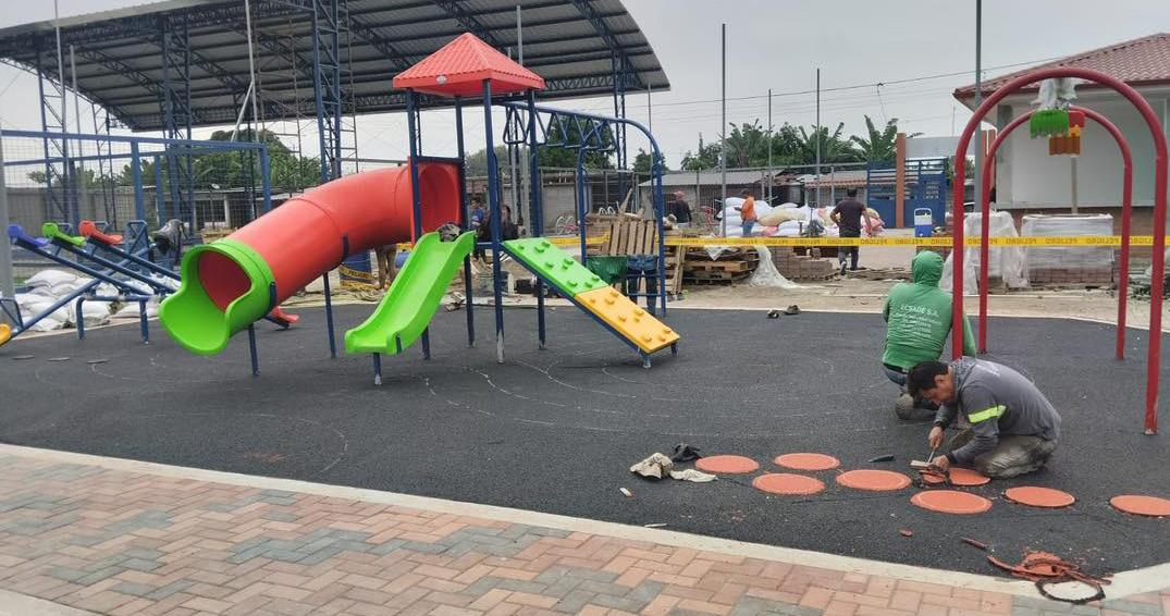 Se ultiman detalles previo a la inauguración del Complejo Deportivo que construye la Prefectura de Los Ríos en la Ciudad Norte, Quevedo. Hay cancha de fútbol, parque infantil y otras áreas de sano esparcimiento.