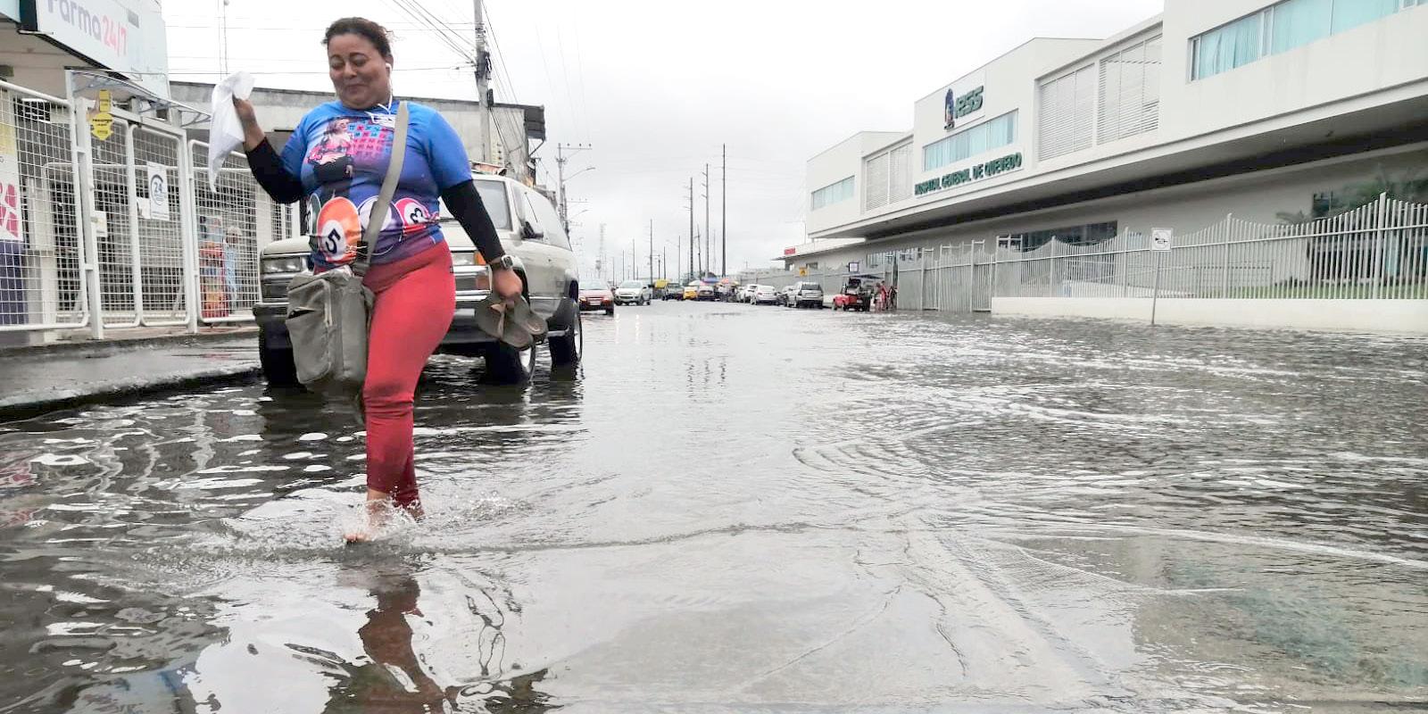Roxana Méndez, salió a su trabajo a las 07:00 de ayer, para lograrlo tuvo que sacarse los zapatos, no imaginó que la calle del hospital del Seguro (al norte) estaría completamente cubierta de agua.