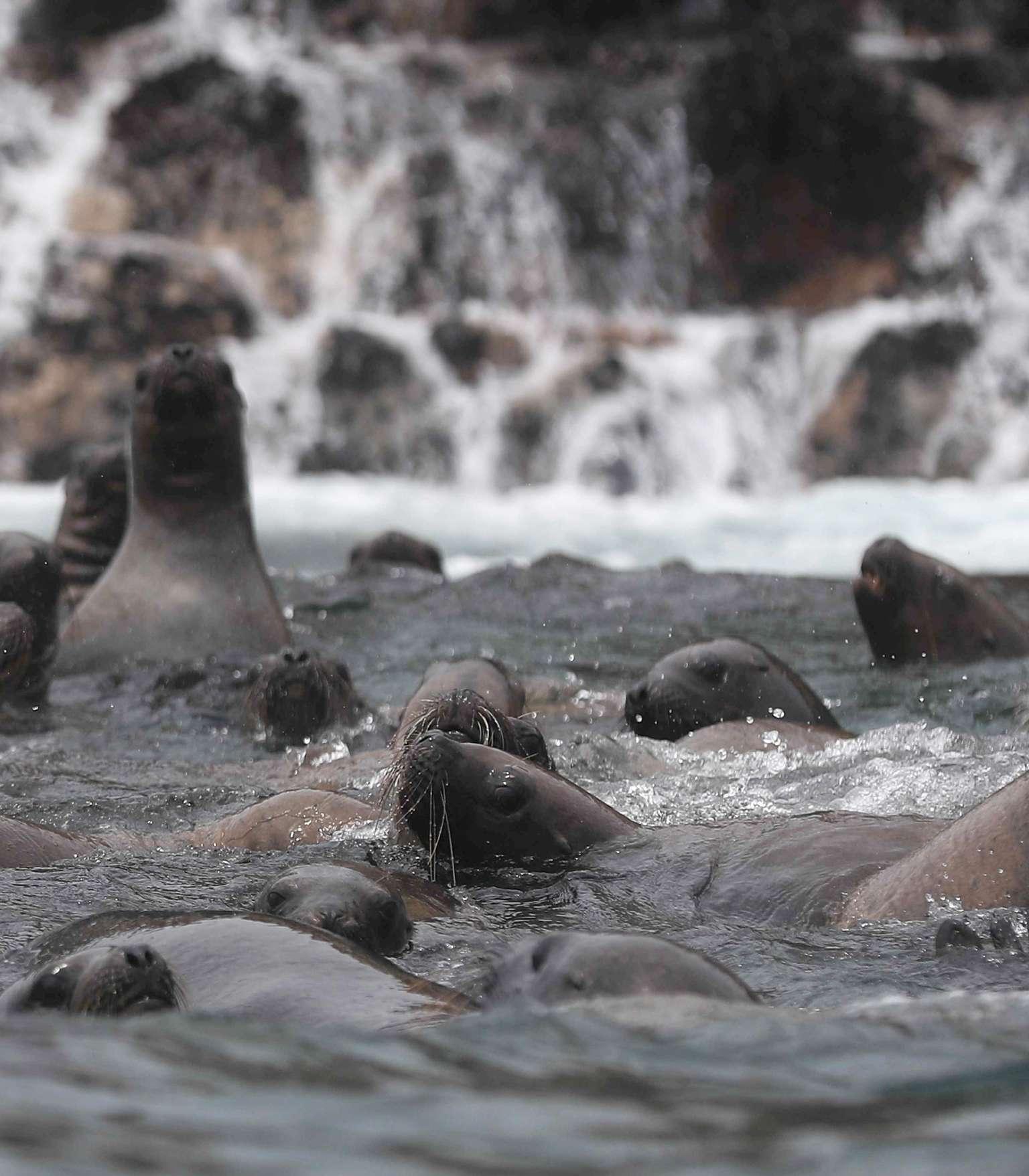 un grupo de lobos marinos disfruta en la isla Palomino cerca a las costas del Callao de Lima (Perú). esta zona se ha convertido en un refugio para la fauna marina en la región y también en un atractivo turístico para Perú. eFe