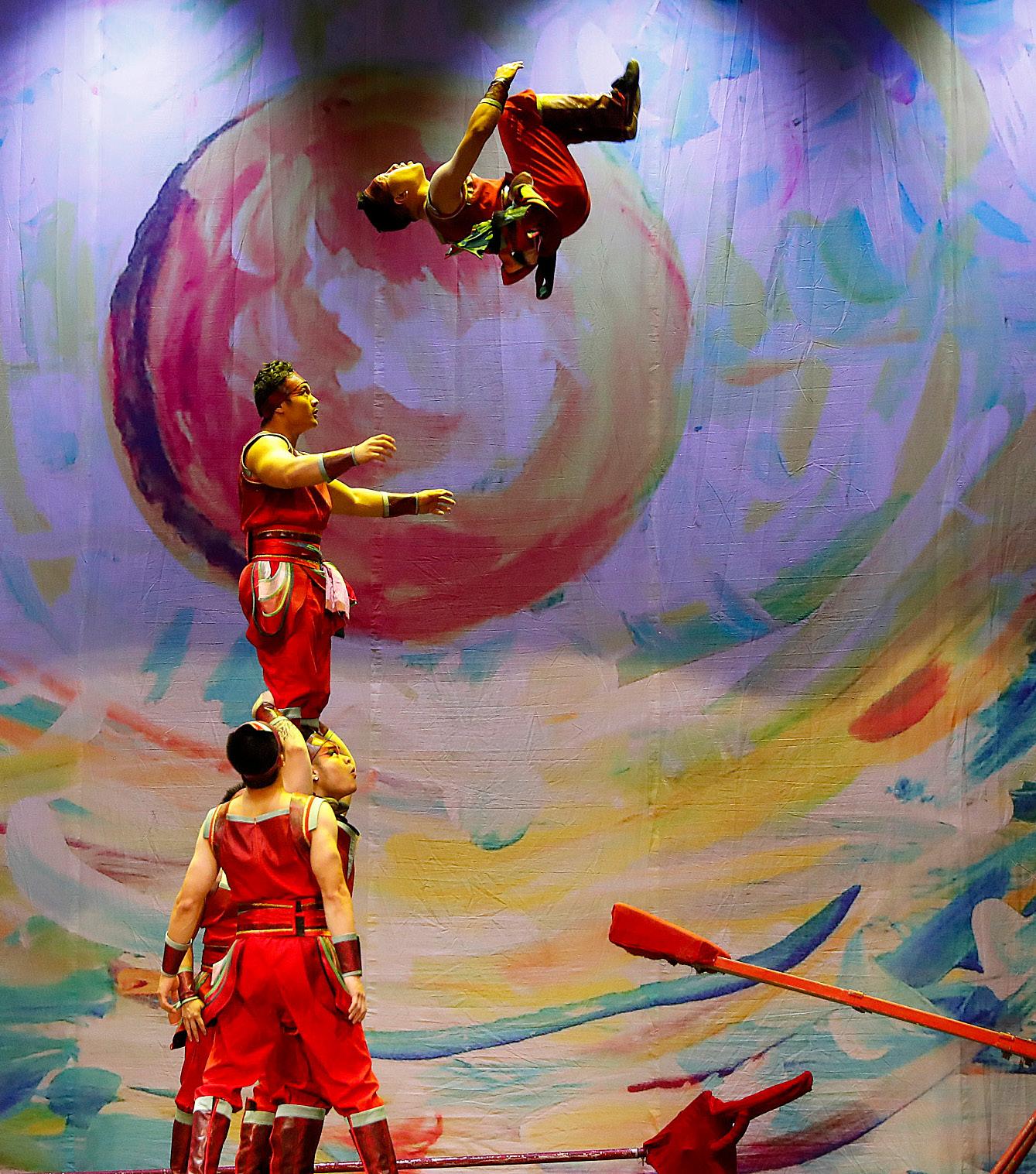 Imagen del Gran Circo Acrobático de China, que actualmente se presenta en españa y que presenta un espectáculo que incluye más de 30 artistas en escena, con medallistas olímpicos y algunos procedentes del Cirque du soleil. el show se centra en las aventuras de un niño soñador que entra en un mundo desconocido de fantasía en el que descubre a una hermosa hada fénix que puede volar sobre el mar. eFe