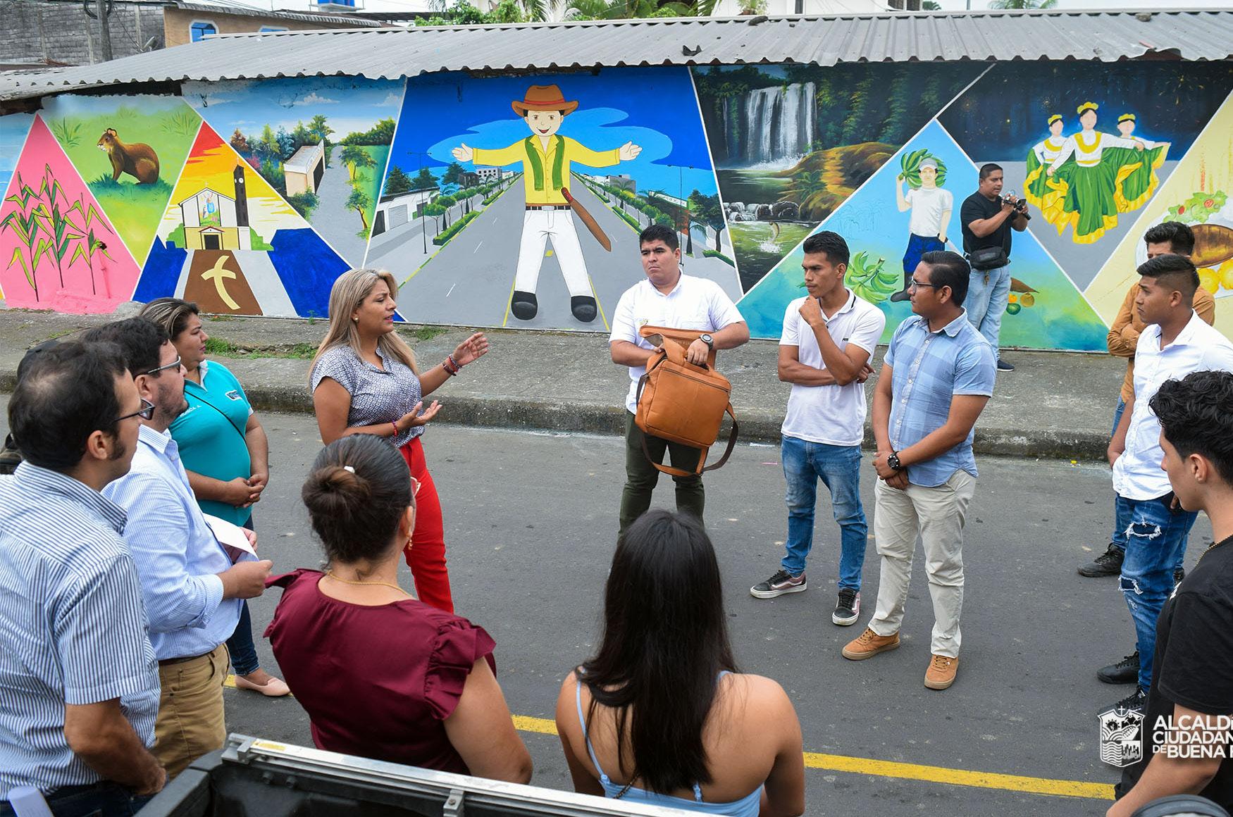 Esta obra de arte fue plasmada en los exteriores de la Unidad Educativa Montevideo, creada por Edwin Verduga y David Ganchozo, quienes manifestaron que trabajaron en la composición, cronología de la identidad de territorio destacando las bondades de Buena Fe, su aporte investigativo y narrativa visual que articula pasado, presente y futuro.