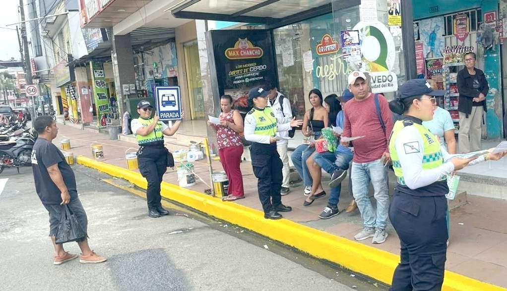 vIABILIdAd. Agentes de tránsito municipal socializando con la ciudadanía sobre las paradas de buses autorizadas en la ciudad.