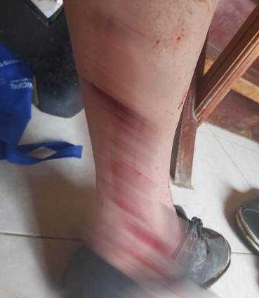 Vicente Zapata aún presenta dolor por las mordeduras del perro y las heridas todavía están visibles en la pantorrilla de su pierna izquierda, pero trata de aliviarlas con la medicina rece-